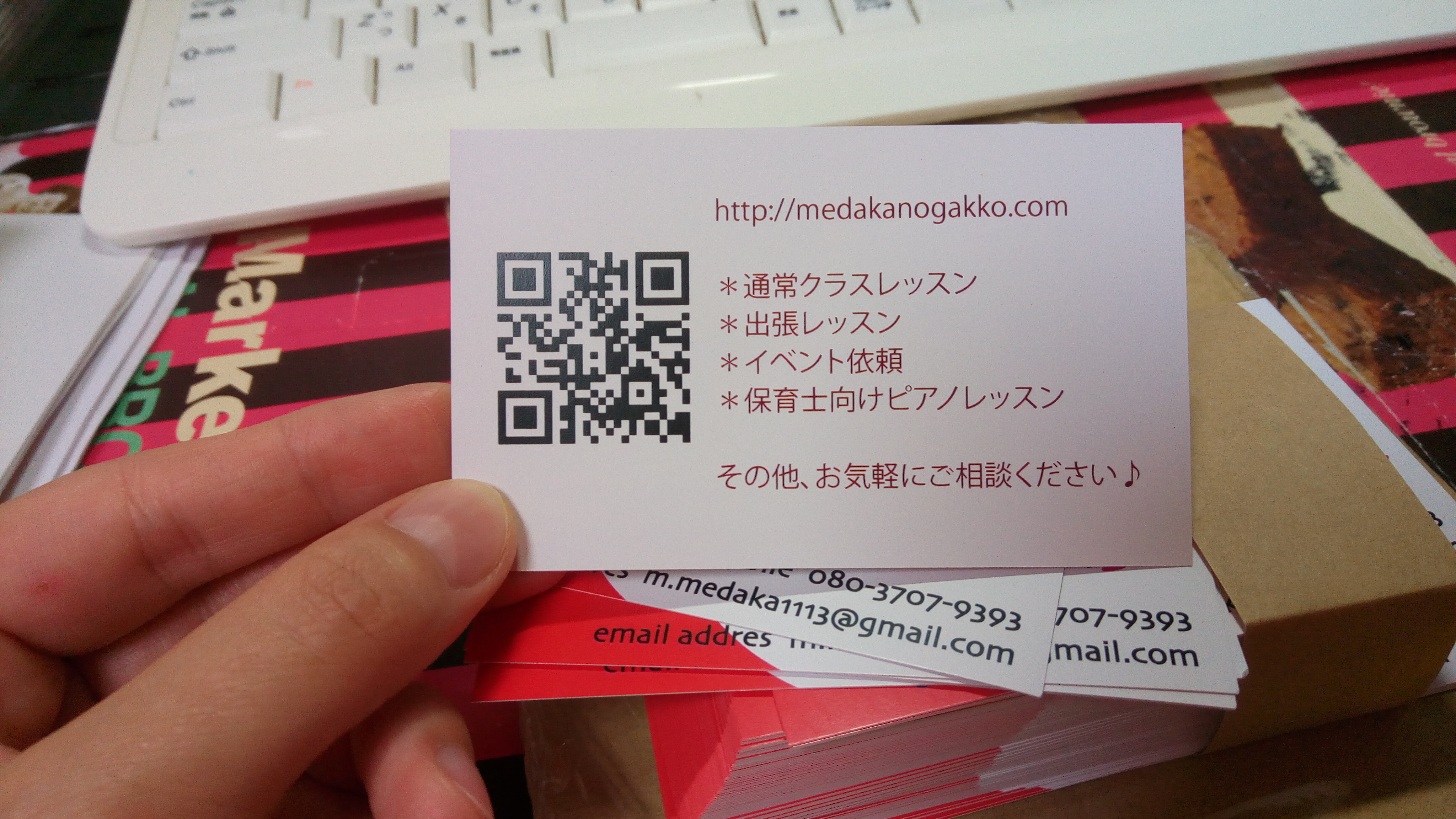 「打ち合わせ」なんて初めてで、「名刺がない!!」と思い急いで発注しましたが僅差で間に合わず・・・帰ってきたら届いていました(笑)