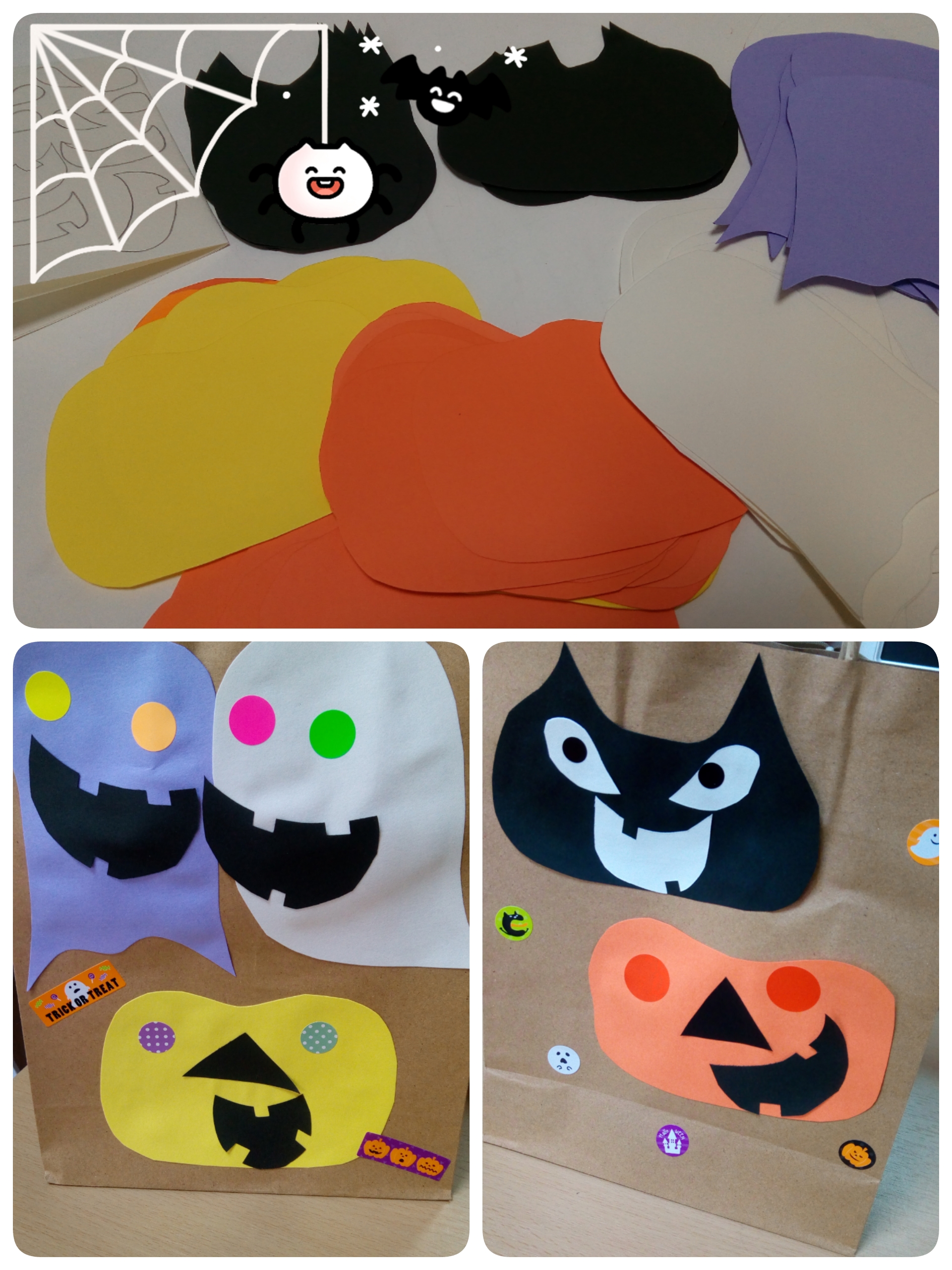 今日は2ねん1くみさんでハロウィンのクラフト「お菓子バック」を作りましたよ!!