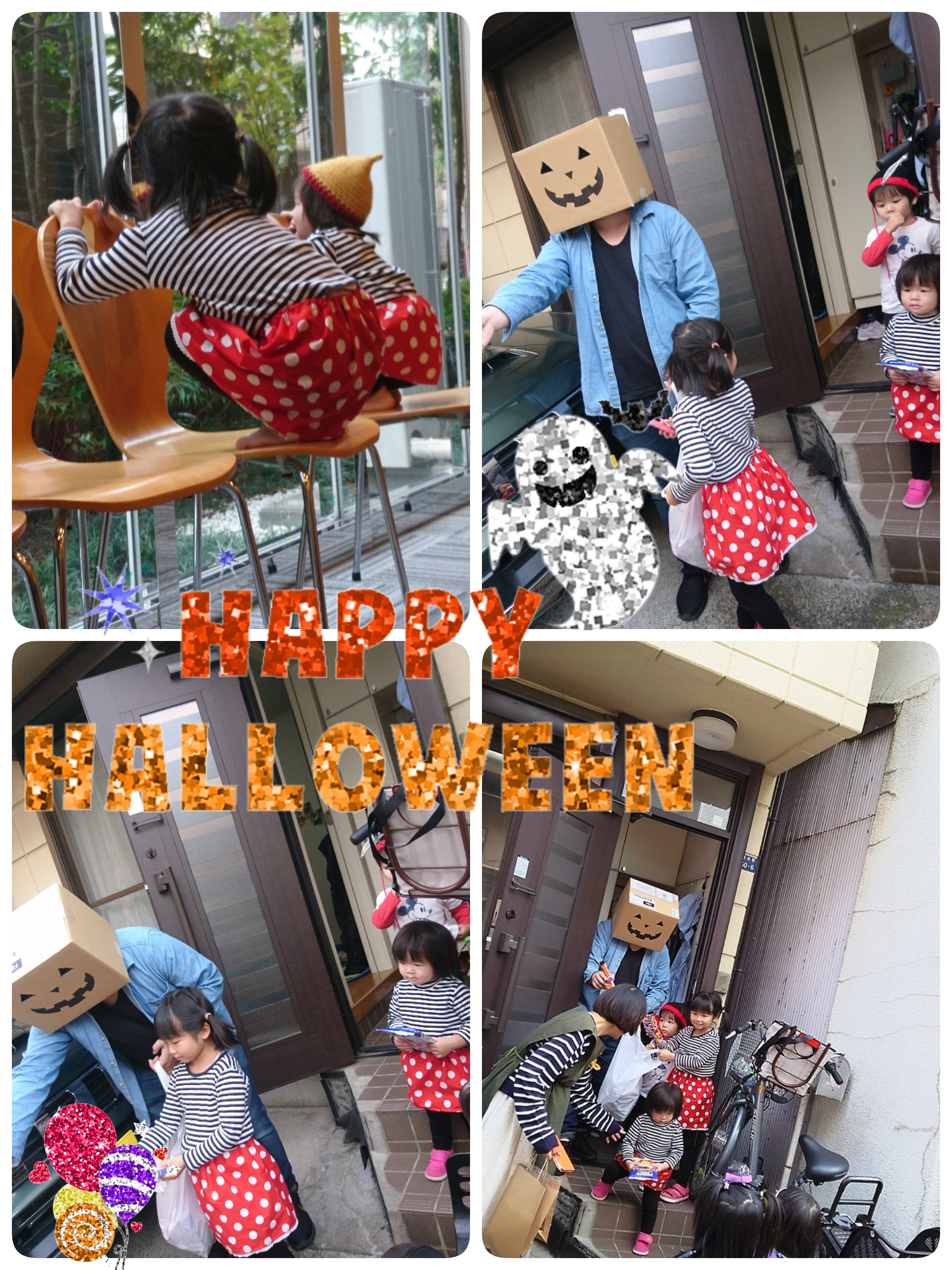 まずは!!レッスンで作ったお菓子バックを持ってご近所をパレード♪