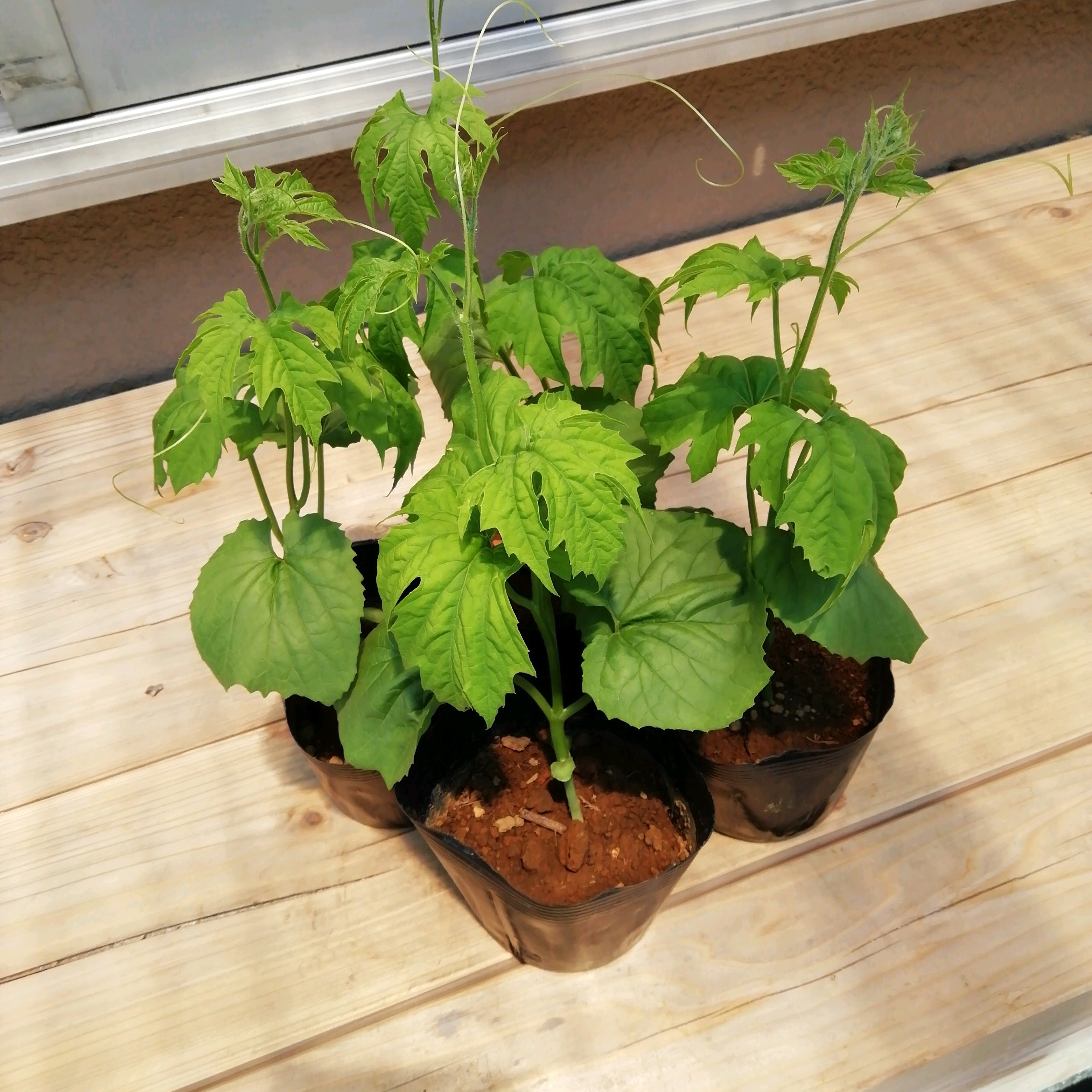 もらった苗でグリーンカーテンを作って写真を送り、優秀作品は広報で取り上げられて、賞状と副賞がいただけるそうで♪