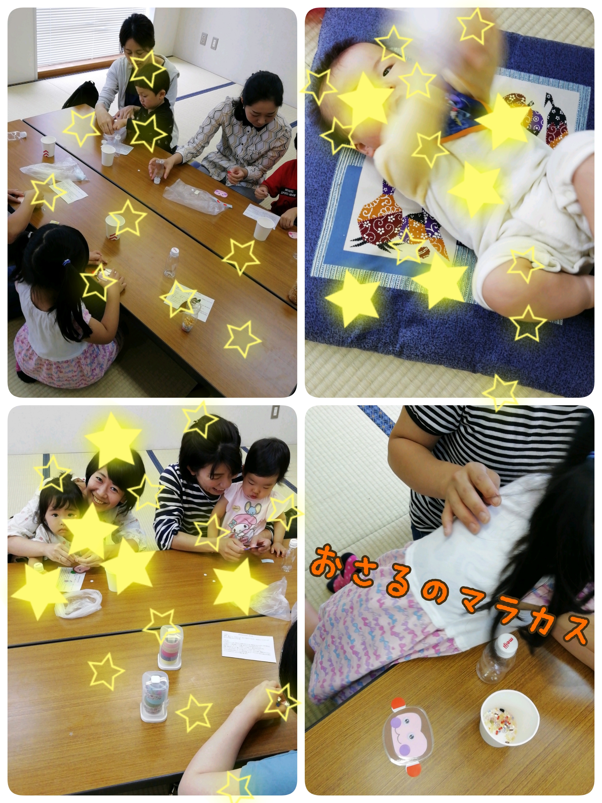 ↓みんなでクラフト♪シールぺたぺた、中身を入れたり出したり!(笑)