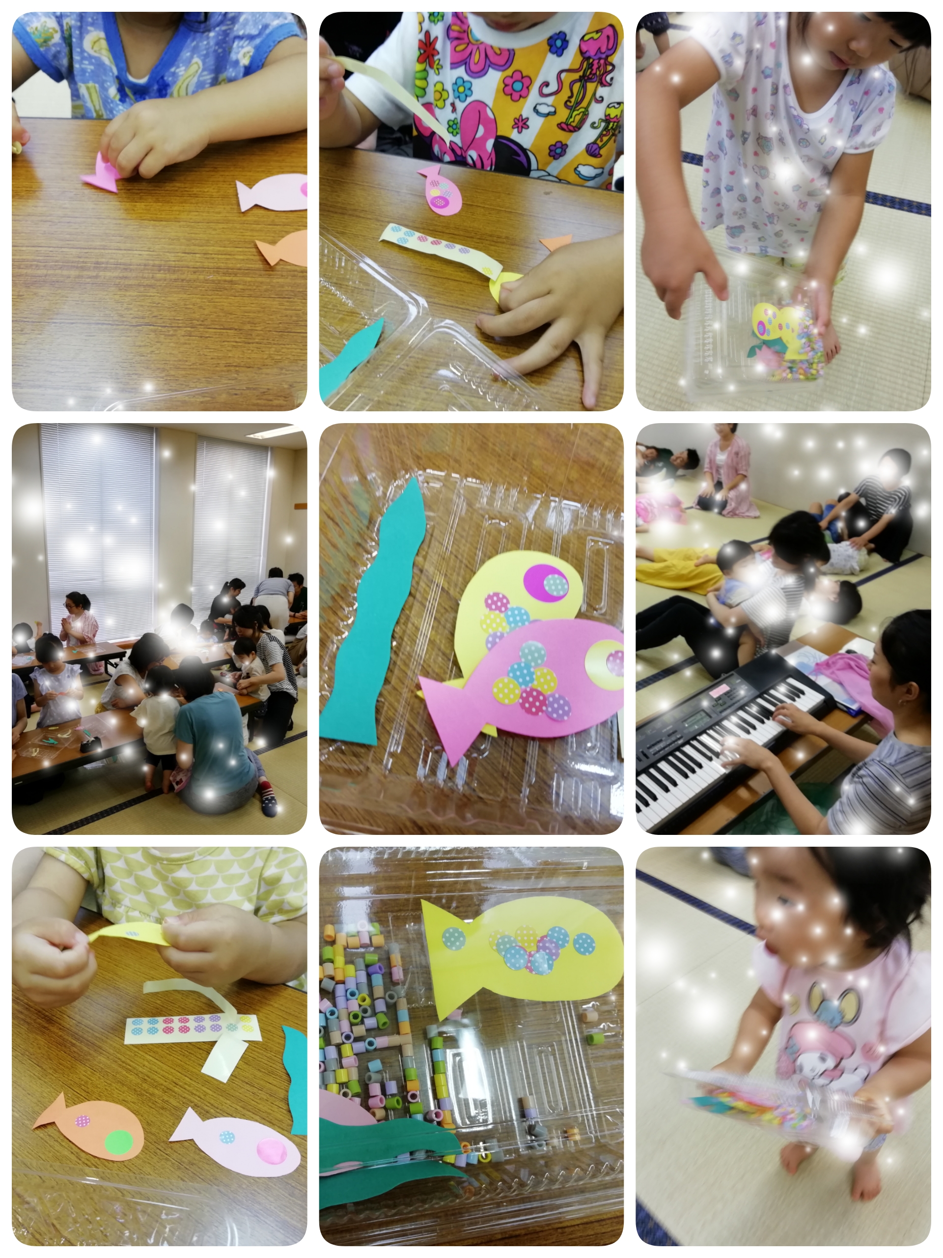 今回は、りさ先生がメイン講師としてオーシャンドラムのクラフトと、海をテーマにしたリトミックを行いました♪