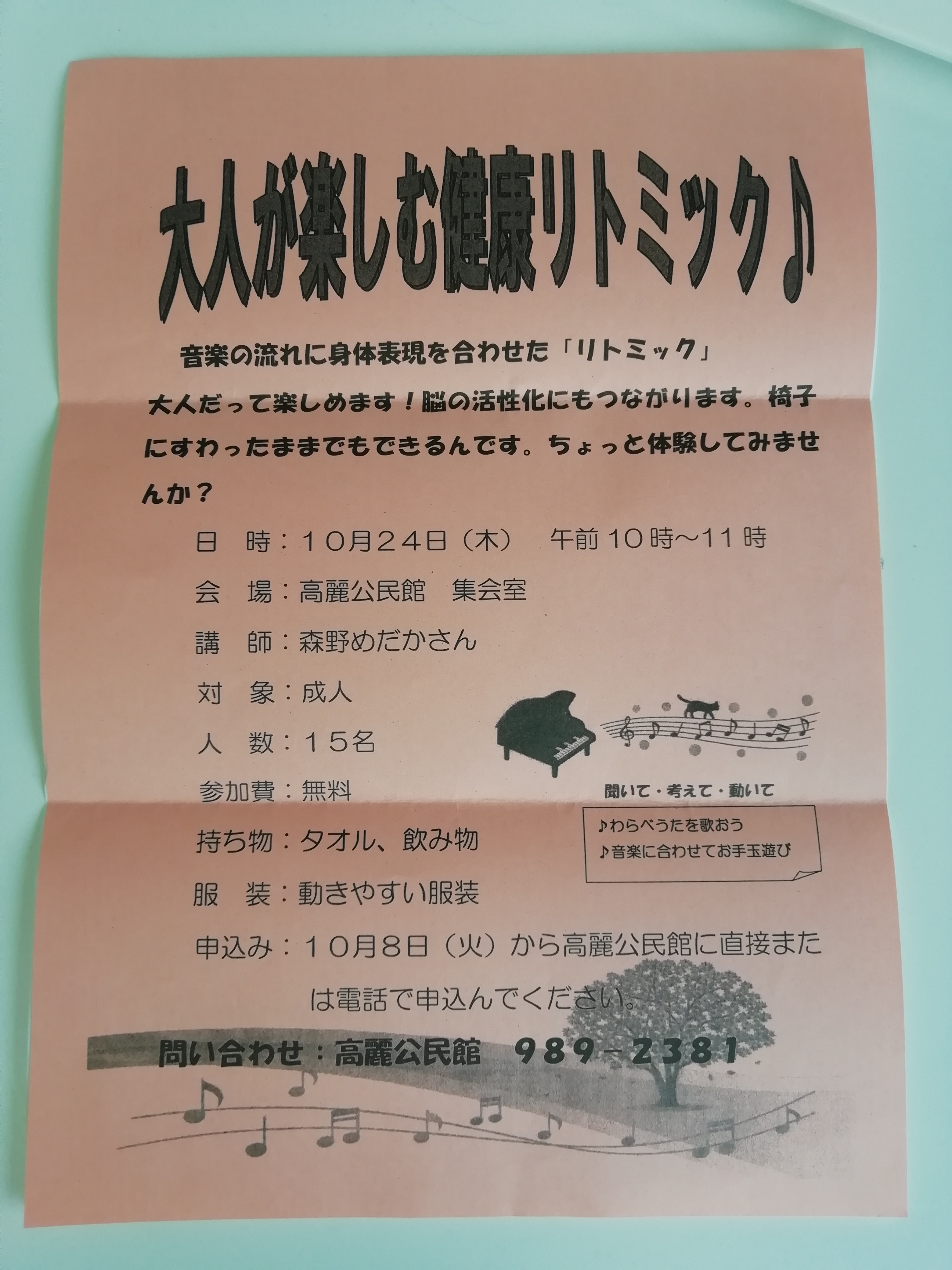 明日は高麗公民館で大人が楽しむ健康リトミックです!