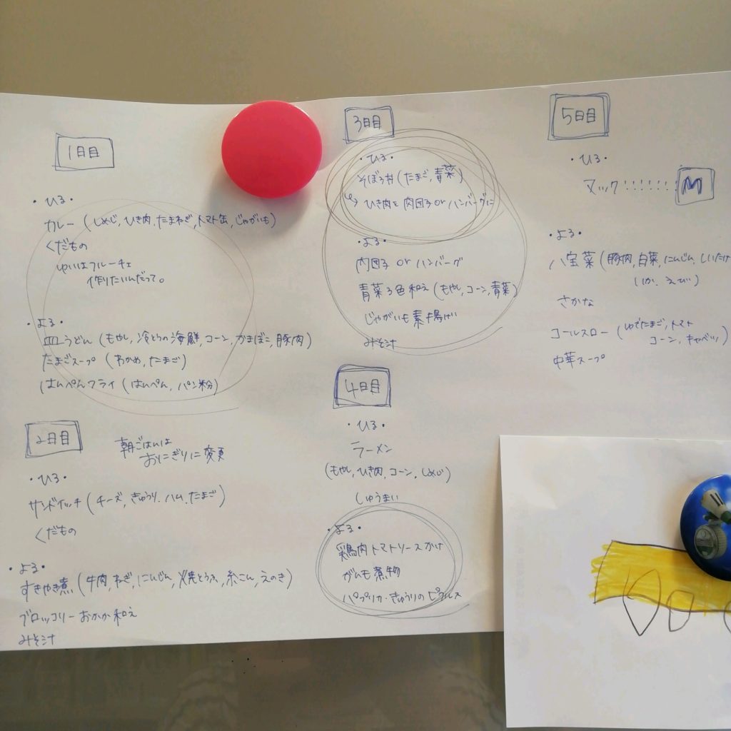 そして、このメニューから一週間の献立を考えました。